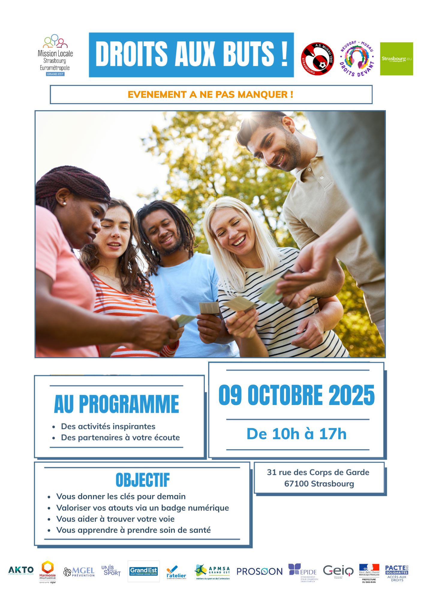 Participe au Forum Inclusif "Droits aux buts" organisé par la Mission Locale Strasbourg Eurométropole en partenariat avec le club de Football AS MUSAU à Strasbourg Neudorf.